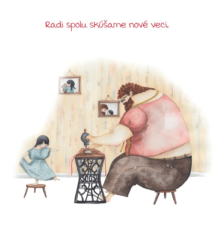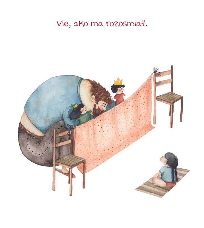 Otec s dcérou sú vyobrazení v tých najbežnejších situáciách. Ako sa spolu hrajú, ako spolu tvoria nové veci, ako sa vedia navzájom utešiť či rozosmiať. Ukazuje jedinečný vzťah, ktorý môže byť iba medzi otcom a dcérou. K tomu všetkému je napísaných iba pár slov. Viac netreba. Tá jedna veta alebo dokonca len jedno slovo vystihuje dokonale obraz, ktorý v tej chvíli vidíte.