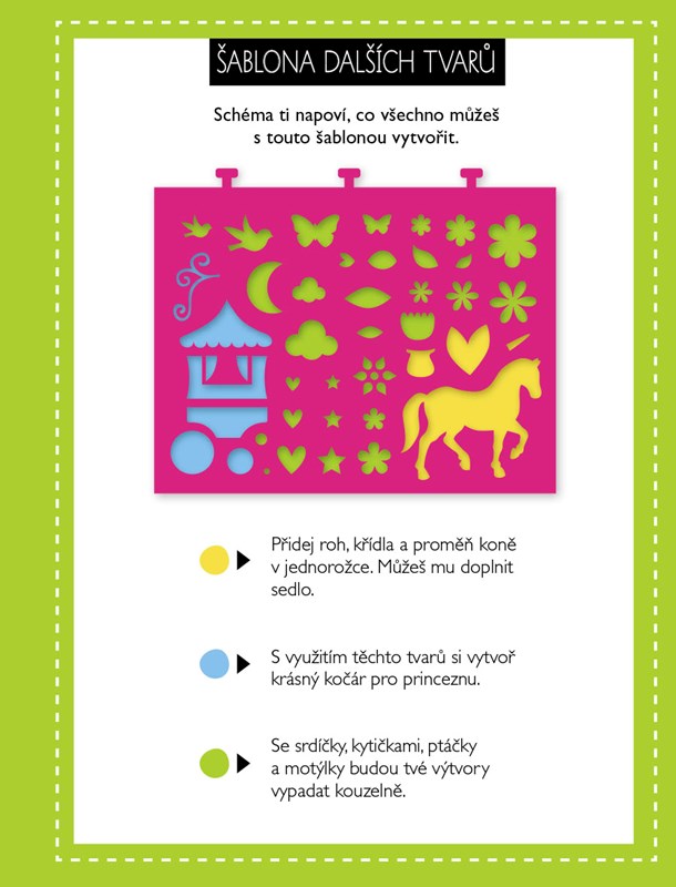 V této úžasné knížce najdeš vše potřebné k tomu, abys vytvořila své vlastní obrázky krásných princezen. Inspiruj se a užij si skvělou zábavu!