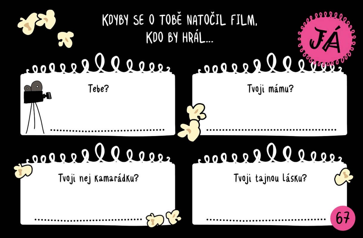 V jednom cool obalu se skrývají dva třpytivé zápisníky. Každý má jiný design, obsah je ale stejný – plný testíků, úkolů, výzev a otázek na tělo. Jeden je pro tebe, druhý dej kamarádce nebo kamarádkám. Vše poctivě vyplňte a odhalte, v čem jste stejné a v čem každá naprosto jedinečná.