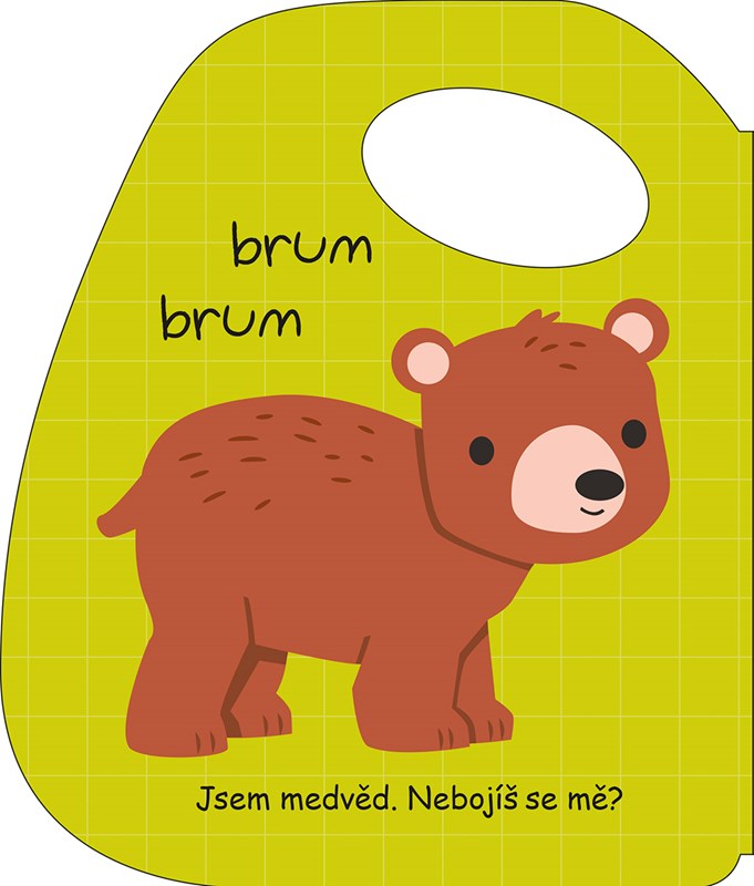 Leporelo s veselými obrázky a praktickým ouškem na nošení nebo přichycení ke kočárku.