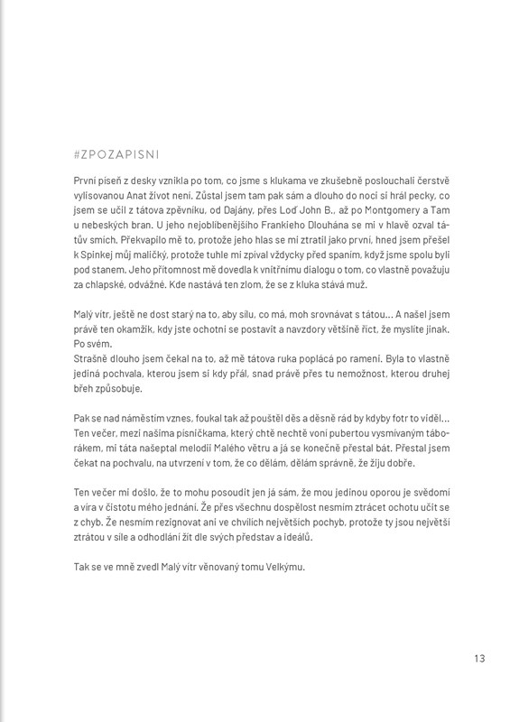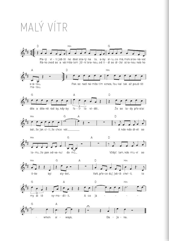 Písničky doprovázejí ilustrace od Ondrashe, všestranného umělce a předního českého tatéra, jehož díla mají ve světě snadno rozpoznatelný akvarelový styl. Zpěvník potěší všechny muzikanty také svou praktickou kroužkovou vazbou. Stránky leží, dají se snadno otáčet a hraní tak pro vás bude úplná hračka!