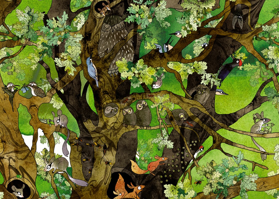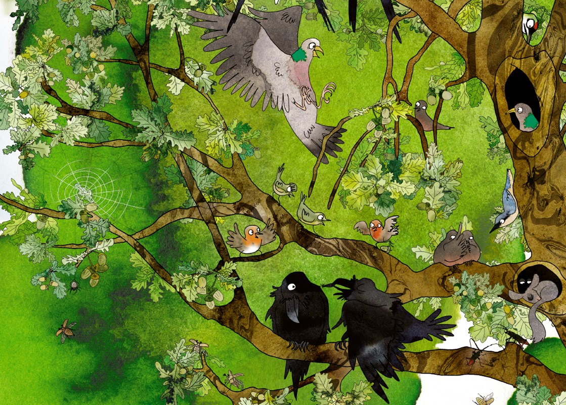 V čom je teda kniha Strom výnimočná? Po otvorení sa vám môže zdať, že strany sú poprehadzované. Pointu knihy som však rýchlo pochopila. Kniha obsahuje 15 tvrdých leporelových strán, ktoré sa dajú odtrhnúť. Po odtrhnutí vám zostanú veľké kartičky. Na jednej strane nájdete zaujímavé fakty či aktivity. Na opačnej strane je obrázok. Teda časť obrázka. Veľký obrázok si môžete postaviť ako puzzle zo všetkých kartičiek. Vtedy vám vznikne obrovský obrázok dubu, kde na vrchole nájdete hniezda rôznych vtákov, nižšie zvieratka, ktoré prebývajú na stromoch alebo v jeho kmeni. Nechýba ani obrázok zvierat, ktoré poznáme z lesa a v neposlednom rade uvidíte aj to, ako to pod obrovským strom vyzerá v zemi. Jednoducho obrovský obraz, na ktorom deti vždy objavia inú drobnosť, ktorá ich bude fascinovať.