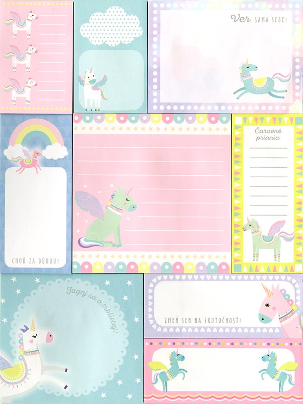 Vyber si z deviatich úžasných druhov samolepiacich lístočkov a použi ich, kedykoľvek chceš.