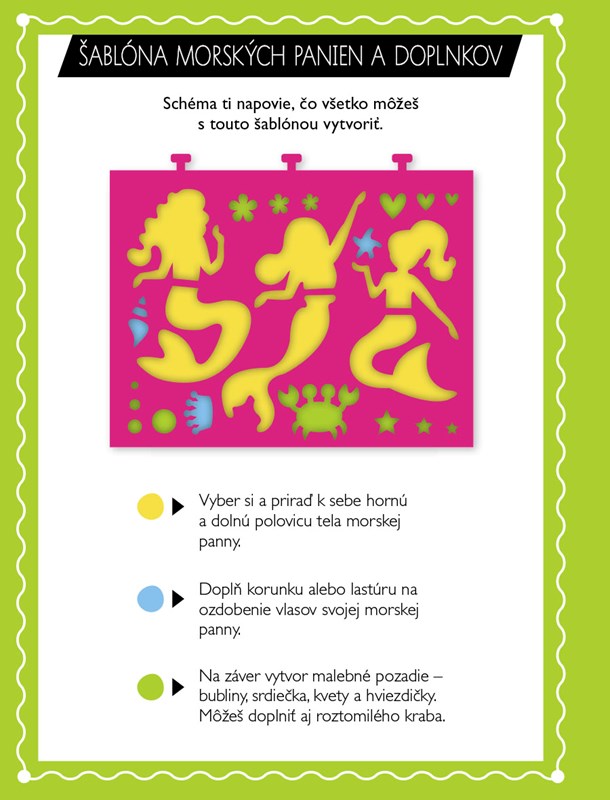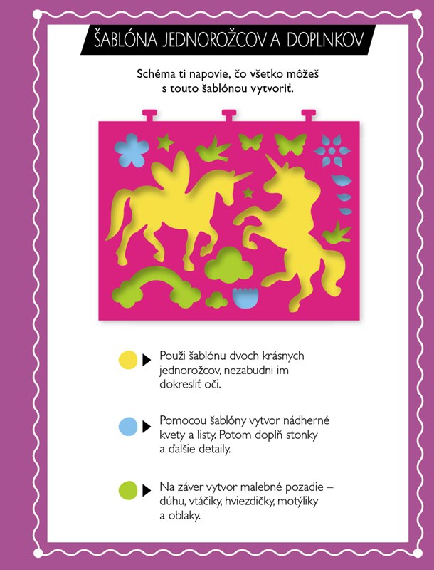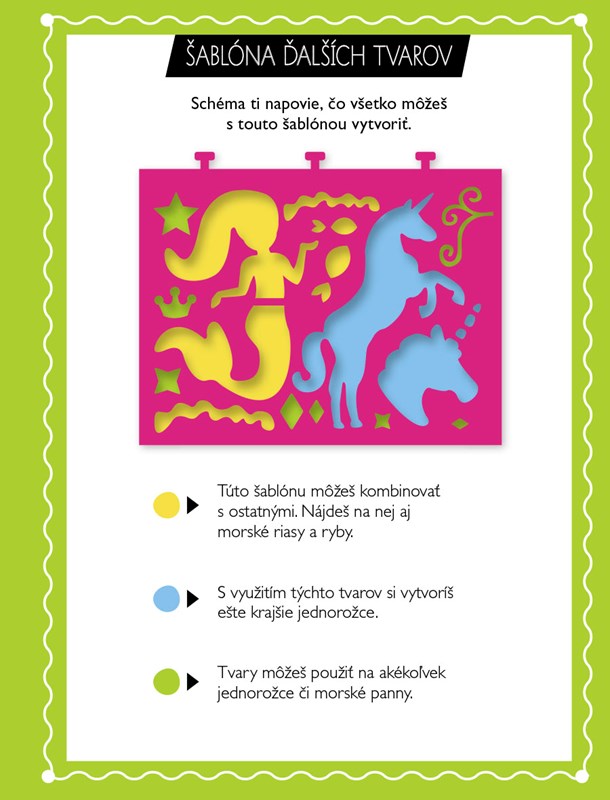 Vďaka tejto zábavnej knižke plnej tvorivých námetov si vytvoríš úžasné obrázky jednorožcov, morských panien a všetkého, čo k nim patrí.