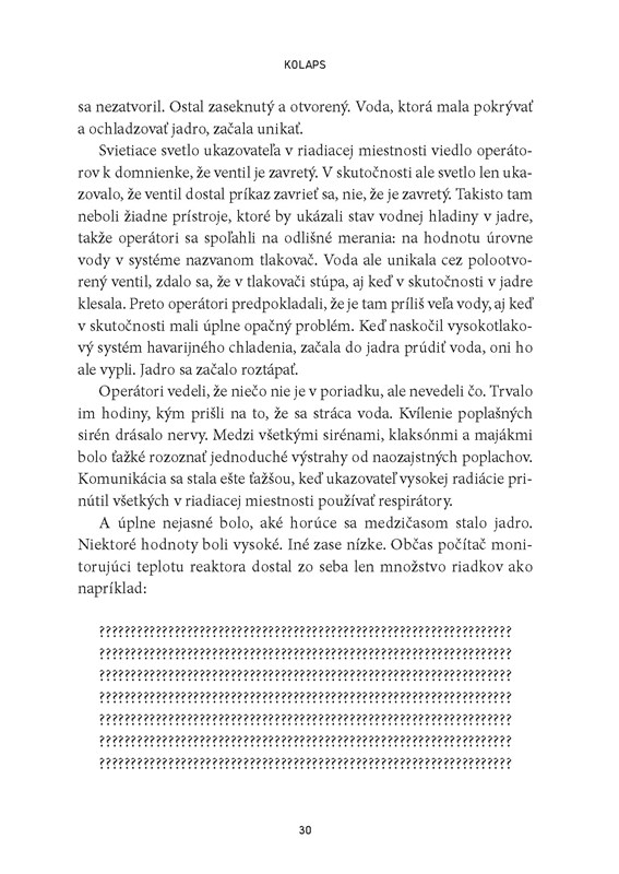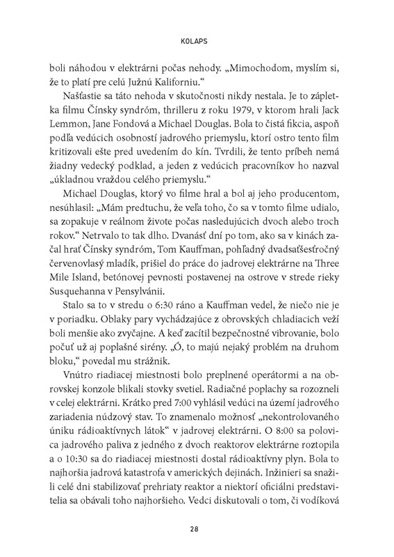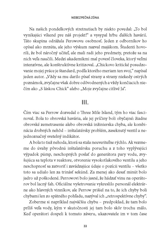 Havária lietadla spôsobená zle vyplnenou kolonkou v úradnickom formulári, krach stámiliónovej firmy kvôli zle nainštanovalému programu, jadrová havária kvôli chybnej kontrolke. Autori analyzujú Three Miles Island incident. Keby však vedeli, že Jaslovské Bohunice skoro položil malý sáčok so silikagélovými guličkami, ktoré nájdete v kúpených topánkach, určite by si vybrali tento príklad.