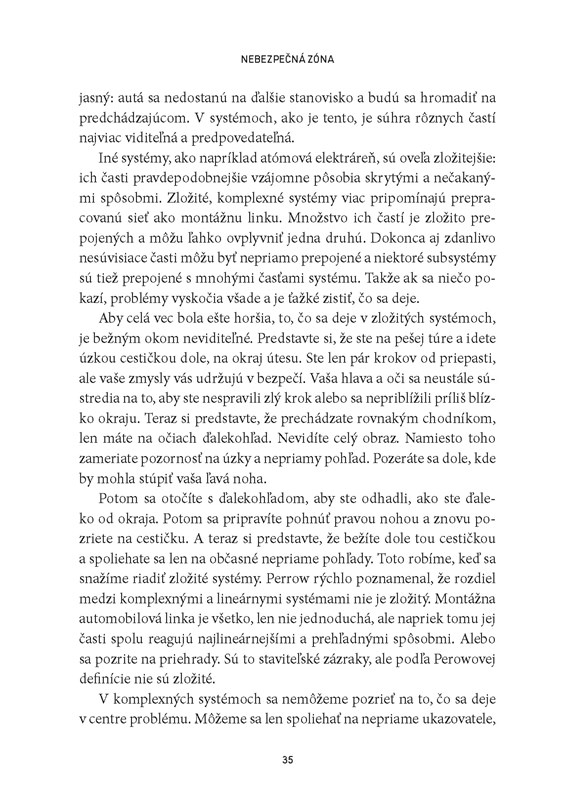 Prvú polovicu knihy tvoria analýzy katastrof, ktoré boli vyvolané úplnými banalitami. Hlavná otázka: ako mohli úplné drobnosti položiť tak veľké systémy? Druhá časť knihy sa zaoberá tým, ako takýmto kolapsom predísť.