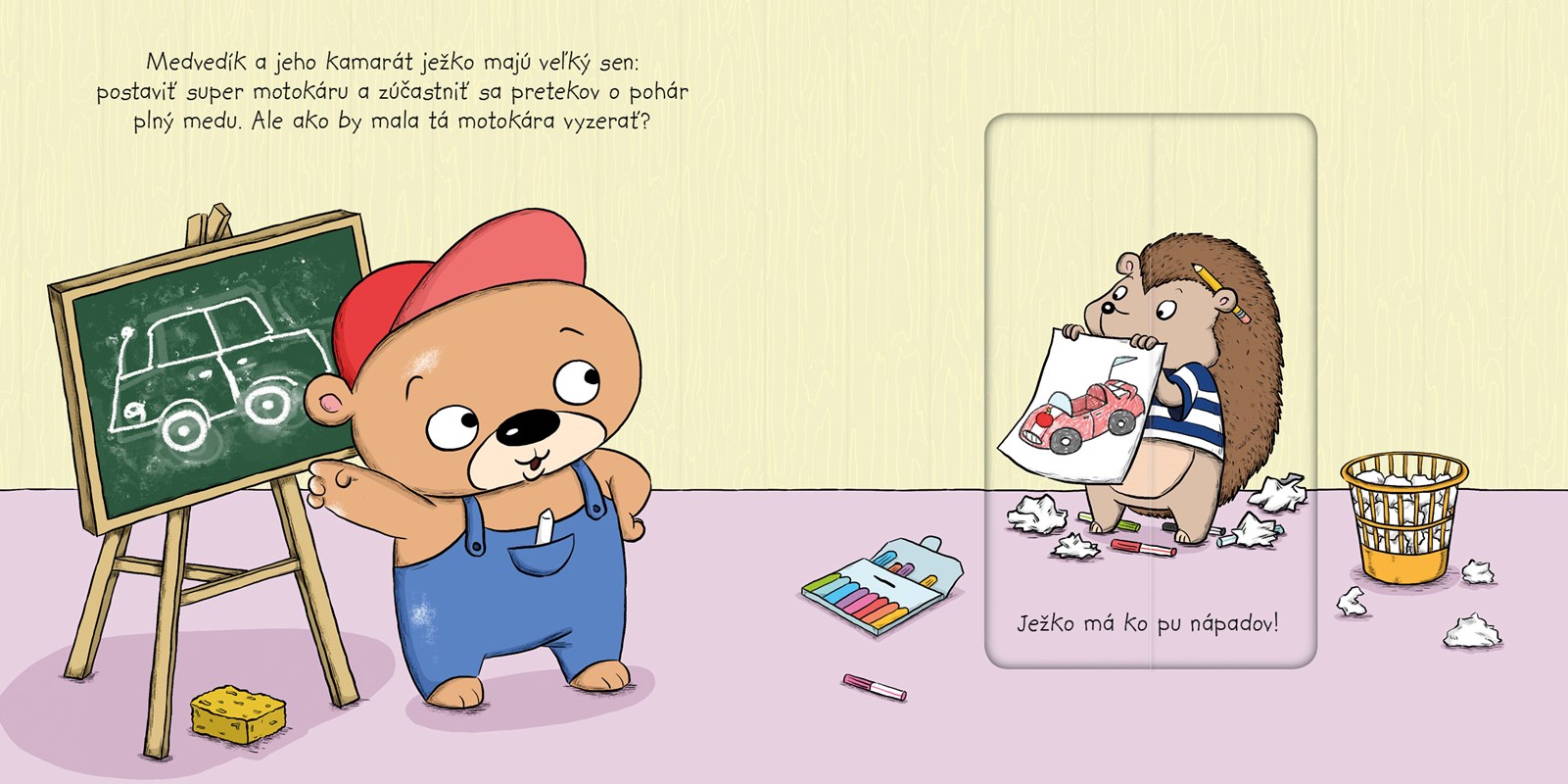 Pomôž medvedíkovi a ježkovi postaviť super motokáru! Zaži s medvedíkom jeho veselé príhody v tejto krásne ilustrovanej knižke s pohyblivými obrázkami.