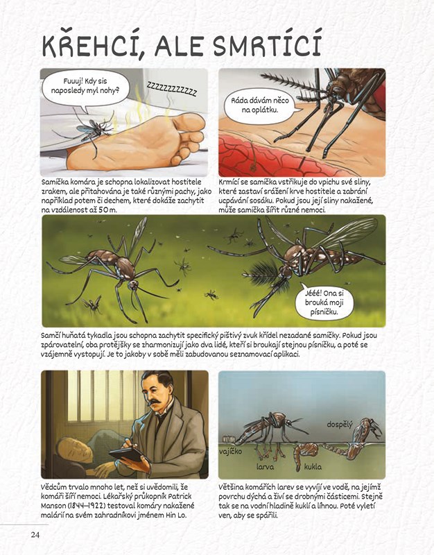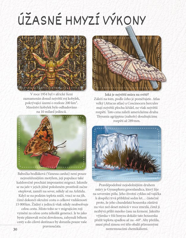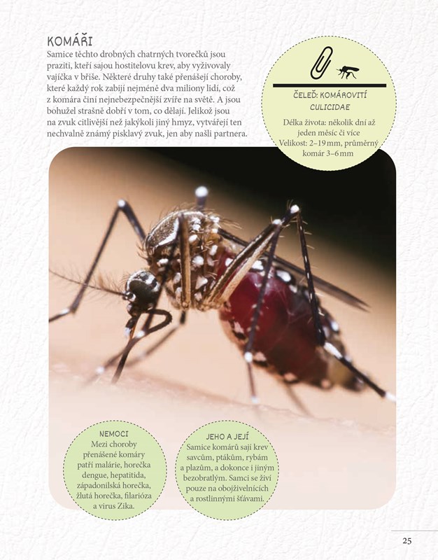 • jak se některé vážky mohou maskovat díky speciálně zvolené dráze letu, a spoustu zajímavostí o dalších létajících esech. Nádherné fotografie, zábavné komiksy a vynikající text hemžící se fakty vyprávějí příběhy včelích a vosích mistrovských stavitelů, masožravých much, motýlích kukel převlečených za listy a vždy otravných komárů. Zkrátka dostatek informací na to, abyste si také přáli mít křídla.
