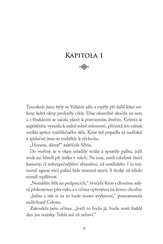 Když byla America vybrána, aby soutěžila o korunu i srdce prince Maxona, nikdy se jí ani nesnilo, že by se právě ona mohla stát královnou. Ale jak se soutěž blíží ke konci a hrozby mimo palác jsou větší a větší, uvědomuje si, kolik toho může ztratit – a jak moc bude muset bojovat o budoucnost, o kterou doopravdy stojí.