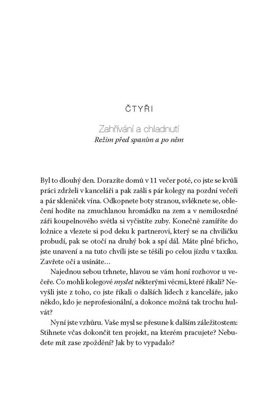 Až jednu třetinu svého života strávíme spánkem. Většina z nás spí ale neklidně, často se budí a únavu následně během dne zahání spoustou kofeinu a cukru, a to i přesto, že hodiny strávené v posteli zcela zásadně ovlivňují naši náladu, motivaci i rozhodovací schopnosti. Ba co víc, zcela zásadně řídí nejen náš pracovní výkon, ale především zdraví.