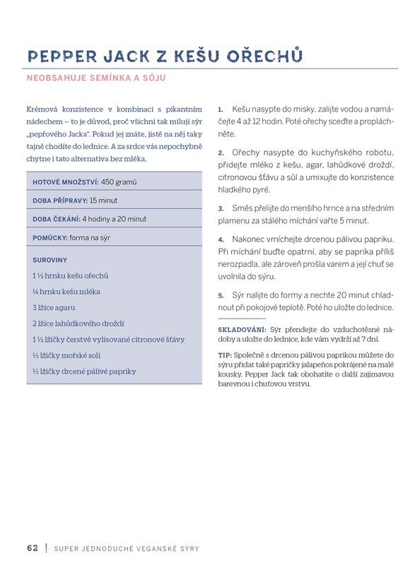 Od dob, kdy se výroba veganských sýrů pojila s prapodivnými surovinami, které nebyly k sehnání, a spoustou drahého náčiní, uplynulo už mnoho času. V knize Super jednoduché veganské sýry najdete snadné recepty, podle nichž si vyrobíte ty nejkrémovější a nejchutnější rostlinné sýry, které bez potíží ustojí i srovnání se sýry tradičními.
