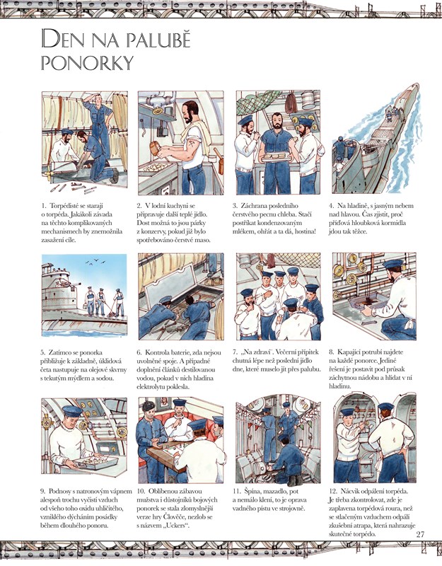 Tato kniha, jedinečný ilustrovaný průvodce, vám ukáže, jak byly ponorky vynalezeny, jak fungují a jaký byl život na palubě ponorky v letech 1939 – 1945. V závěru knihy naleznete rovněž popis nejmodernějších jaderných ponorek současnosti.