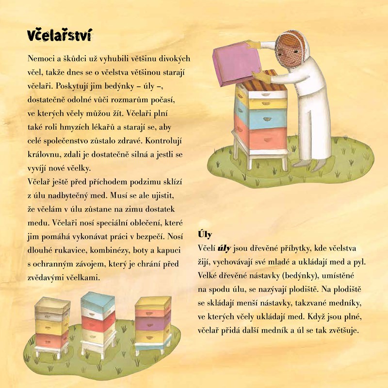 „Knížka, po které bude prahnout dětská mysl i jazyk.“ – deník Independent Knížka Včelař dětem přibližuje krásné řemeslo včelaření a naučí je mnoho poznatků o životě včel, získávání medu a péči o tyto nenahraditelné zástupce hmyzí říše. Četbu doporučujeme doplnit jezením medových muffi nů, na něž uvnitř knížky najdete recept, který zvládne každý!
