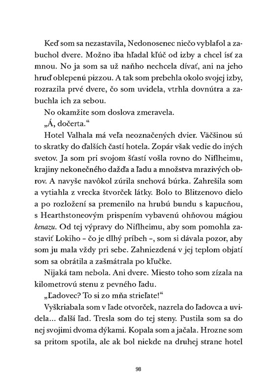 V deviatich svetoch stále nie je pokoj. A pretože Magnus Chase odišiel navštíviť svoju sesternicu Annabeth, nezostáva nič iné, než aby kožu na trh niesli jeho kamaráti – odvážna Samirah a jej snúbenec Amir, trpaslík Blitzen a elf Hearthstone, drzá Mallory Keenová, ozrutný Nedonosenec Gunderson, bojovný Týdžej a premenlivá/ý Alex Fierro. Podarí sa im pod ochrannou rukou boha Odina vystopovať hromovládcu Thora a znova oddialiť deň skazy ragnarök?