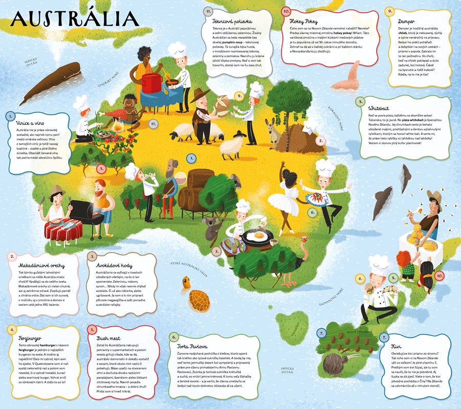 Na šiestich rozkladacích mapách či v kuchárskej príručke sa dozviete množstvo zaujímavých informácií o tom, na čom si pochutnávajú ľudia z celého sveta.