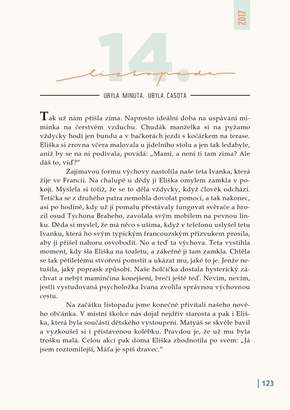 „Od sestřičky dostávám roušku, bílou gumovou obuv, zástěru a hodně široké zelené kalhoty. Kačenka už leží na sále a já usedám k její hlavě. Prakticky vzápětí se to stane. Matyáš je na světě a já si pozvolna uvědomuju, že jsem dvojtáta,“ nadšeně popisuje sportovní moderátor Vojtěch Bernatský. Nevšední příběhy všedních dnů v podání dvojnásobného otce, který slasti i strasti spojené s dětmi prožívá po čtyřicítce. A je zřejmé, že ho to jaksepatří baví!