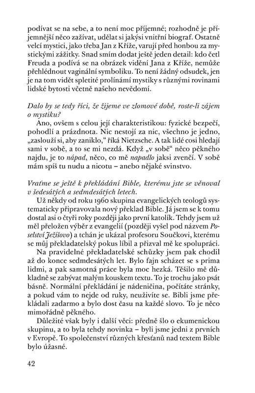 Knižní rozhovor v šestnácti kapitolách sleduje životní osudy Jana Sokola, jeho reflexe společenského dění a myšlenkové zrání. Dotýká se studia biblistiky, Nietzscheho díla, setkání s Janem Patočkou i v českém prostředí méně známých personalistů. Těžištěm jeho zájmu je filosofická antropologie, vztahy mezi filozofií a náboženstvím, filosofií a politikou. Zde pramení jeho přiléhavé a stručné postřehy k mezím svobody a lidských práv, k současné rodině, občanské společnosti, politice, evropské integraci. S precizností zlatníka promýšlí velká témata kultury, vzdělání a výchovy, na nichž stojí západní civilizace. Otázky, které si klade, čtenáře vedou nejen k pochopení širších souvislostí evropské historie, ale i k vděčnosti za život a svobodu, a především k touze předat je dalším generacím.