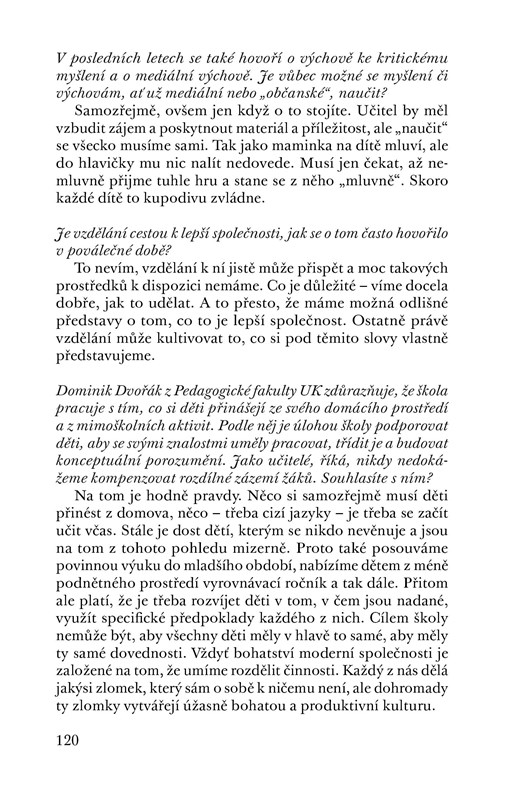 V závěru knihy Jan Sokol stručně shrnuje hlavní myšlenky svých knížek, které nejsou zrovna běžné, a přitom jsou zásadně užitečné, nebo dokonce na výsost potřebné.