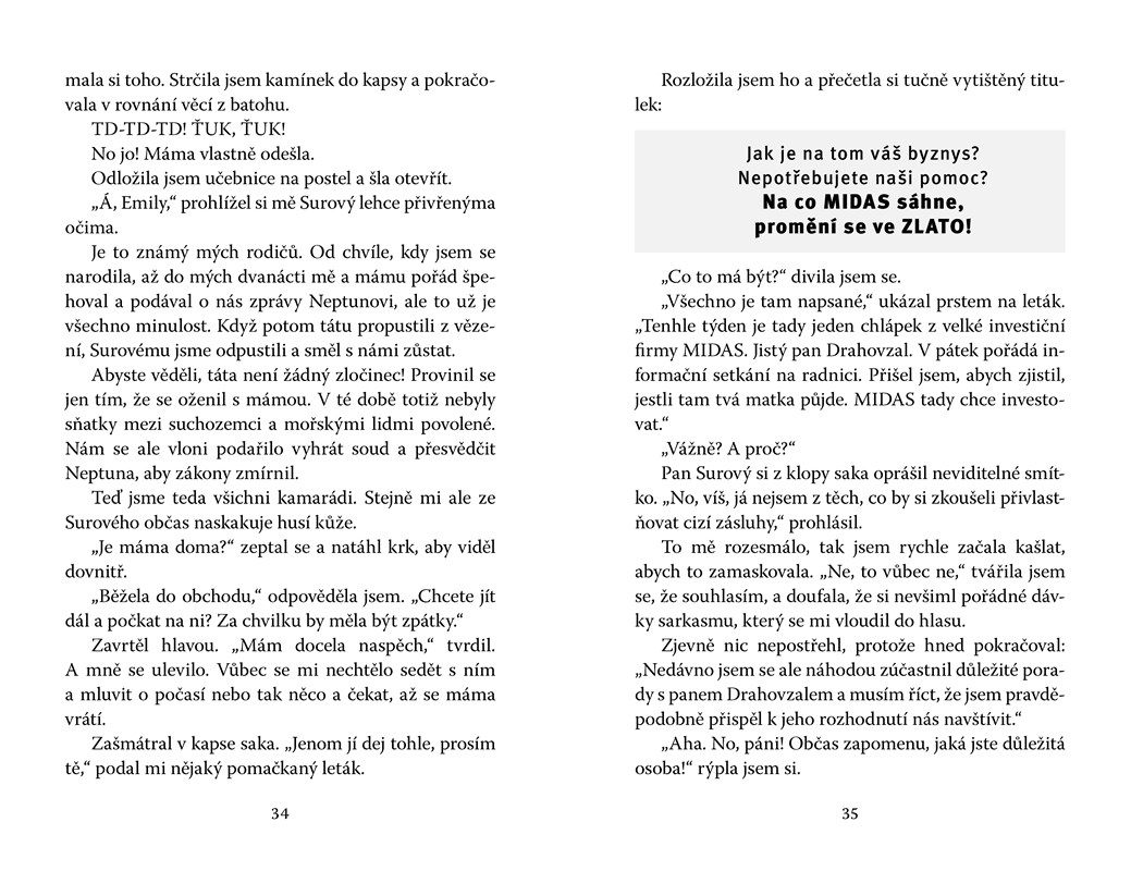 Emily získá kouzelný kamínek, který umí plnit přání. Díky němu nahlédne do budoucnosti… a je to pohroma! Zkusí jiné přání, jenže každá cesta časem ji dovede do budoucnosti, která se vyvíjí nepříznivě buď pro suchozemce z Brightportu, nebo pro mořské lidi v Shiprocku. Oceán je znečištěný spoustou plastů, všude samé odpadky a obyvatelé obou měst spolu nedokážou žít v souladu. Existuje něco, co by Emily mohla udělat, aby budoucnost změnila?