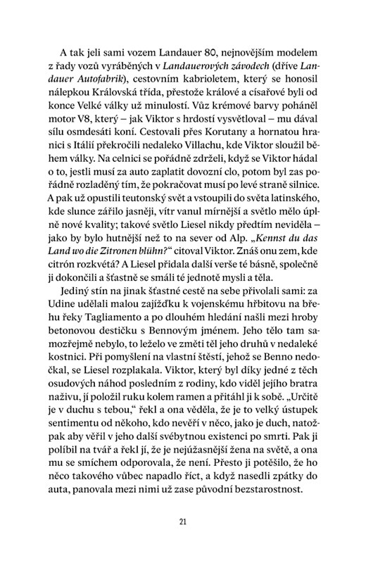 Román inspirovaný skutečným osudem vily Tugendhat, který zaujme od první věty. Na pozadí příběhu jejích majitelů zrcadlí tragédii celého českého národa.