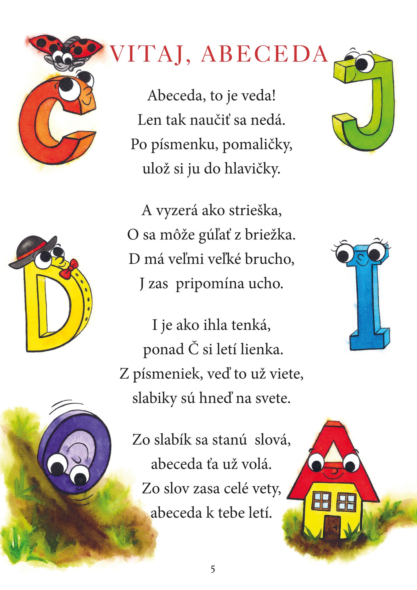 A presne tak to bolo aj v tejto knižke! Písmenká sa zabávali a poskladali nám zábavné písmenkové riekanky. Tie ti prezradia, prečo napríklad zebra stále chodí v pyžame, prečo cvrček v zime nemôže fidlikať na husličkách a o čom sníva malý slimáčik. Dozvieš sa, akú chybu urobila neposedná žabka alebo akých dobrých kamarátov má ukazovák...