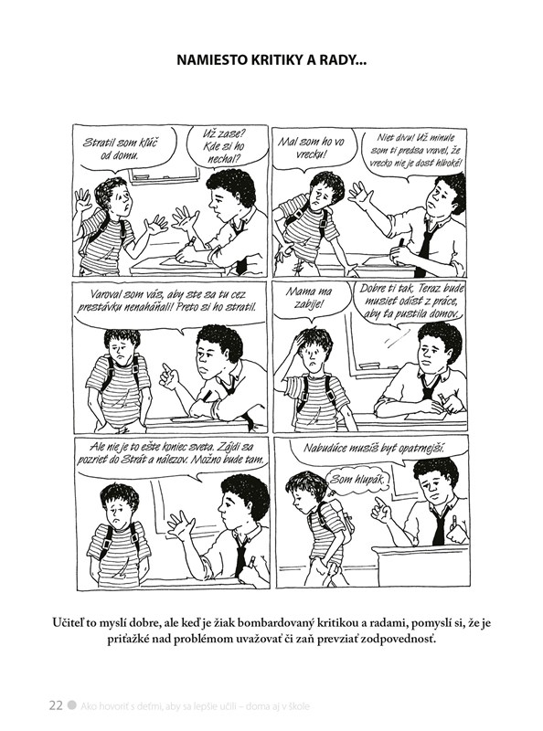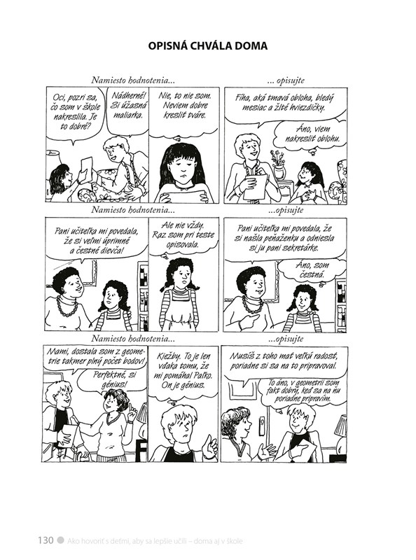 Pomocou jedinečnej komunikačnej stratégie a vďaka názornosti kreslených odporúčaných dialógov autorky dokázali rodičom i učiteľom naznačiť, ako riešiť každodenné problémy, ktoré sa môžu u detí vo vzťahu k učeniu vyskytnúť.