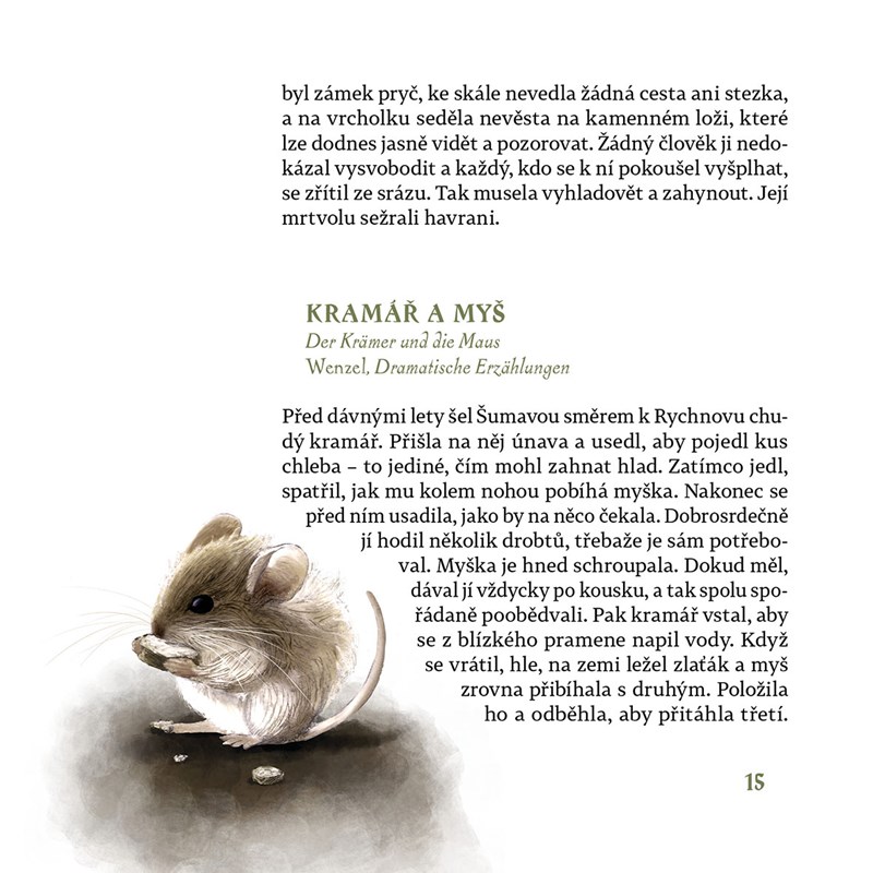 Bratři Grimmové prosluli v německé i světové literatuře svou sbírkou lidových pohádek a písní, méně už se ale ví, že zaznamenali také rozsáhlý soubor pověstí a legend. Skřítci, trpaslíci, duchové, lesní či vodní panny, udatní rytíři, vládcové a světci – těmi všemi a mnoha dalšími bytostmi se to v pověstech bratří Grimmů jenom hemží. Pro naše čtenáře bude nepochybně lákavý i fakt, že se řada z oněch „německých“ pověstí odehrává na českém území. Reprezentativní výbor z pověstí bratří Grimmů připravila a z němčiny přeložila Ruth J. Weiniger.