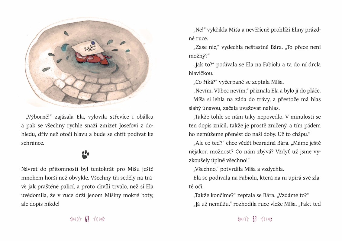 Spolužačky Báru, Míšu a Elu, která se do města zrovna přistěhovala, dá jednoho dne dohromady Fabiola, kočka jejich osamělé sousedky, paní Ládvíkové. A to z jednoho prostého důvodu: chce, aby jí holky pomohly vyřešit dávnou záhadu, která paní Ládvíkovou už dlouho trápí. Při společném pátrání se toho dozví hodně nejen o naší nedávné minulosti, ale hlavně o sobě samých. Zjistí, kolik se v nich skrývá důvtipu a odvahy… První díl nové trilogie od autorky Projektu Pes.