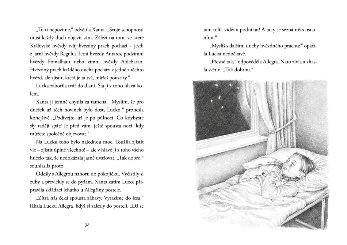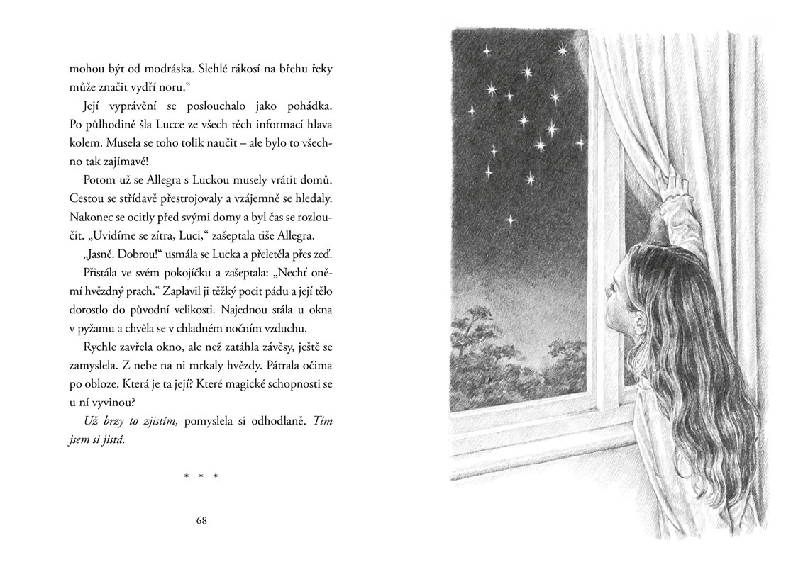 Lucka má prázdniny, ale žádnou kamarádku, se kterou by se dalo něco podnikat. Potom se ale přistěhují noví sousedi a rázem se všechno změní. Lucka zjistí, že se narodila s tajnými vlohami ducha hvězdného prachu. Takoví lidé umějí létat a mají magické schopnosti, ale také důležité poslání – chránit přírodu a pečovat o ni. A tak se Lucka každý večer vydává vstříc nečekaným dobrodružstvím...