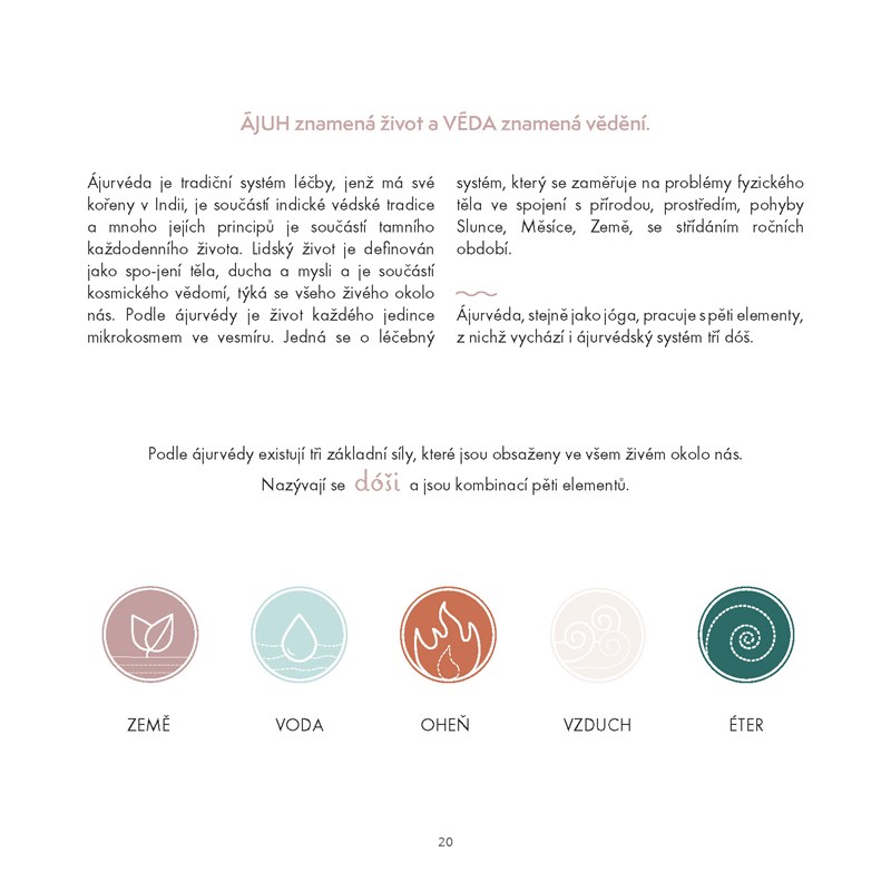Kniha je souborem zkušeností, které autorka nasbírala na své cestě jogínským životem. Zuzka Klingrová se nezabývá jen cvičením samotným, jejím východiskem je tantra jóga, kde nejde jen o asánovou praxi, dechové techniky a jogínské tradice, ale i o astrologii, mystické učení a ajurvédu. Právě ajurvédě je zde věnována rozsáhlá kapitola, ve které jsou popsány základy tohoto tradičního systému léčby.