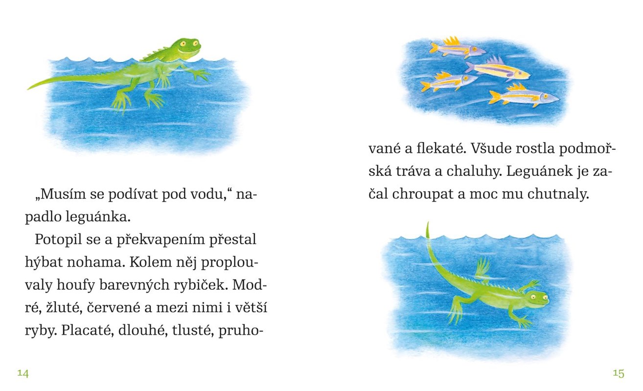Z moře vyčníval ostrůvek velký jako bochánek a jednoho dne se tam z vajíčka vyklubal leguánek. Ale rodný ostrov se mu vůbec nelíbil, a tak skočil do moře a plaval pryč. Potkal různé mořské i ostrovní obyvatele, a ne všichni byli přátelští. Jak to jen s leguánkem dopadne? Najde ten nejkrásnější ostrov?