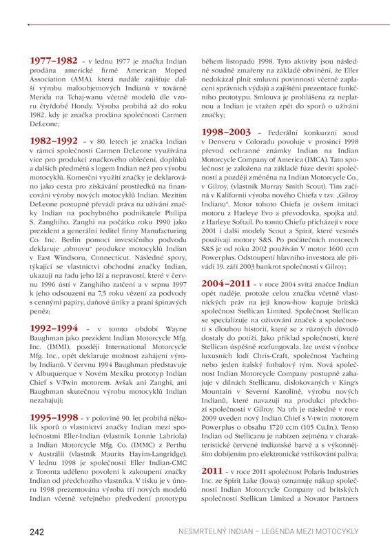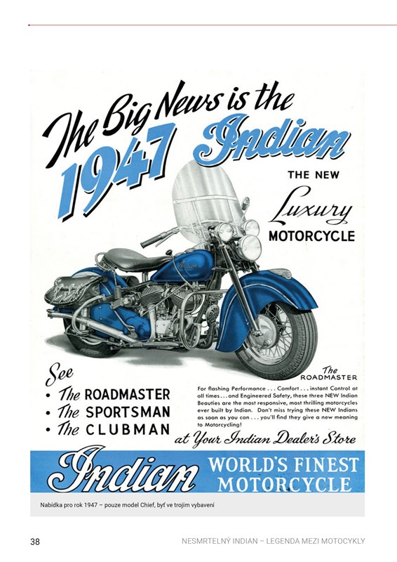 Indian, kultovní ikona mezi motocykly, přijíždí v unikátní publikaci z pera českého autora. Detailně zmapovaná historie značky není ani zdaleka tím jediným, co v této publikaci najdete. Dozvíte se, jak motocykly Indian přispěly k rozvoji motorizace na našem území, jakou úlohu sehrály ve válce, ve službách policie nebo jako součást vozového parku větších i menších firem a živnostníků, a také o jejich působení v motosportu.