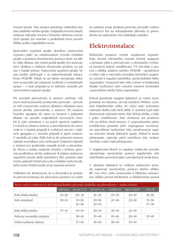 Technicky založení čtenáři přivítají podrobné informace o nejpopulárnějším modelu Scout a základní pokyny k údržbě a renovaci, nechybí ani osobní zkušenosti řady sběratelů a majitelů Indianů. Kniha neopomíná ani novodobé modely a vzkříšení značky na přelomu století. V přílohách pak najdete významné historické milníky, technické přehledy, ale i fotodokumentaci ze srazů a informace o aktuálně působících klubech v Česku a na Slovensku.