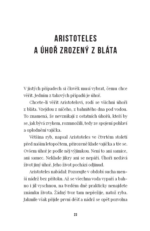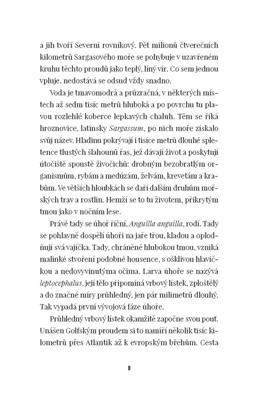 Je podivuhodné, jak málo toho víme o úhořích. Odkud pocházejí? Co jsou vlastně zač? Ryby, nebo nějaká zvláštní stvoření? Po tom pátrali vědci i filozofové po staletí, od Aristotela přes Sigmunda Freuda až po současné badatele. Avšak ani dnes, v době vyspělé vědy a techniky, neumíme zaznamenat jejich páření nebo vysvětlit, co je pohání, když se po desítkách let žití ve sladké vodě vracejí do oceánu umřít.