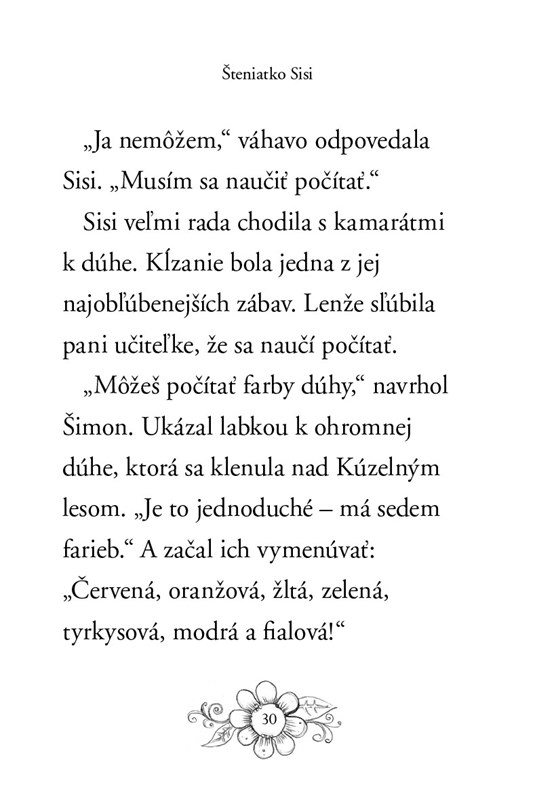 Šteniatko Sisi je peľový psík, a aby vedelo poriadne robiť svoju prácu, musí sa naučiť počítať. Lenže vôbec to nie je jednoduché. Ako sa má sústrediť na čísla, keď Kúzelný les je také nádherné a zaujímavé miesto? Pomôže mu niektorý z nových kamarátov, ktorých spozná, alebo si bude musieť poradiť samo?