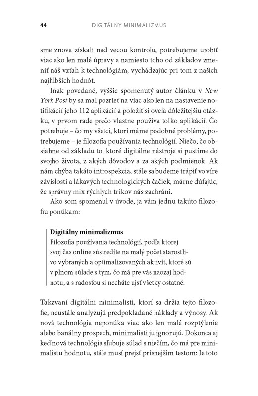 Minimalizmus je umenie vedieť, ako veľa je akurát dosť. Digitálny minimalizmus túto myšlienku aplikuje na technológie v našom osobnom živote. Je kľúčom k sústredenému životu v čoraz rušnejšom svete.