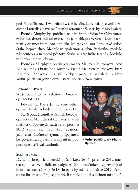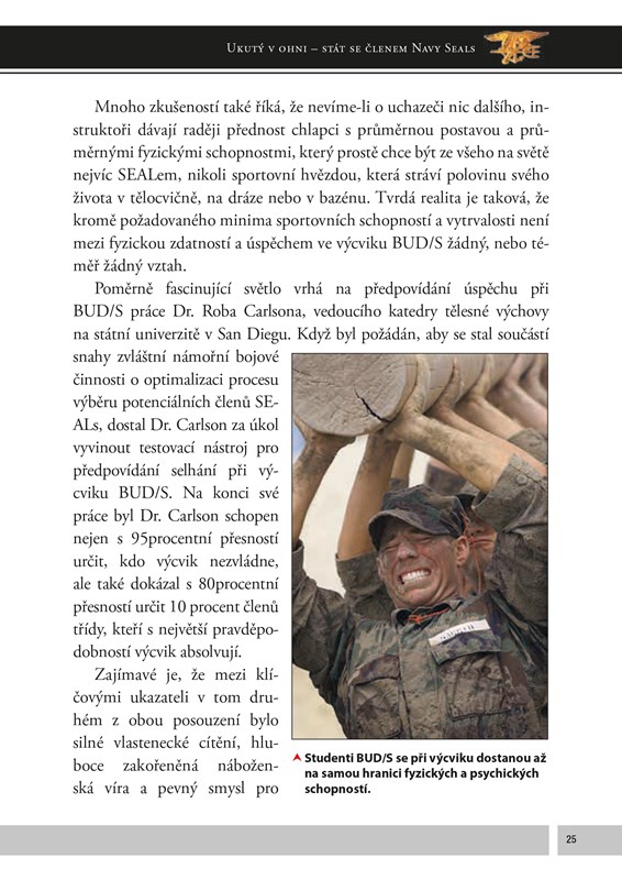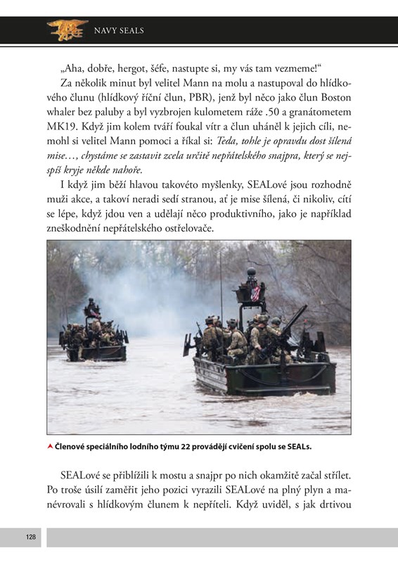 Houževnatost, odhodlání, dokonalé zvládnutí všech myslitelných způsobů boje. To jsou NAVY SEALs. V této neohrožené vojenské síle se mísí odkaz spartských bojovníků, římských legií a japonských samurajů. Seznamte se s historií a poznejte současnost SEALs – od jejich prapůvodu coby žabích mužů na plážích Normandie až po dnešek, kdy operují na moři, ve vzduchu i na souši ve všech částech světa, od polárního kruhu po vyprahlou poušť. Autoři popisují dějiny SEALs prostřednictvím příběhů mužů, kteří stáli u zrodu a vývoje jednotky, stejně jako vojáků, kteří v jejich řadách bojovali a nasazovali své životy. Nechybí detailní informace o výcviku, největší milníky v dějinách SEALs a podrobný popis jejich nejznámějších bojových misí.