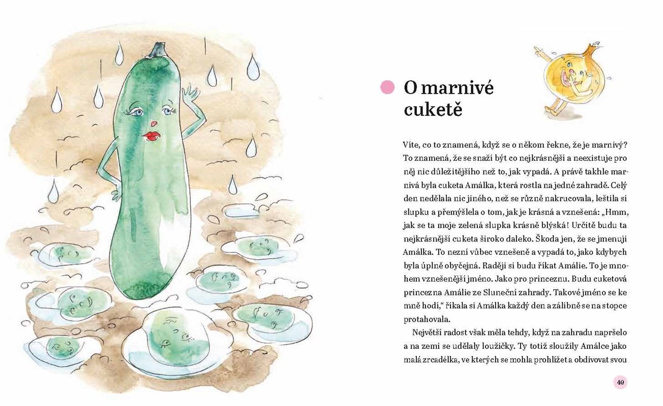Pod zemí i nad zemí to totiž žije! Přesvědčí vás o tom nová pohádková knížka oblíbené autorky Báry Vajsejtlové. Chcete vědět, co se nakonec vyklubalo ze záhadného semínka, jak to dopadlo s nafoukaným rajčetem, marnivou cuketou nebo okurkou, která nechtěla, aby skončilo léto? Tak hurá na zahradu!