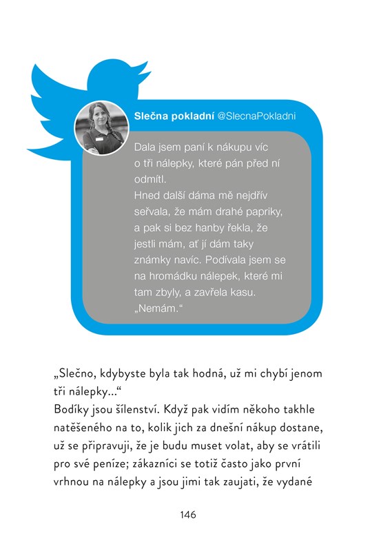 Protože jsem doma už svým vyprávěním o zážitcích z obchodu všechny otravovala, začala jsem své příspěvky dávat na internet. Příběhy, které jsem nezveřejňovala, protože byly delší a komplikovanější, najdete v této knize. A s nimi i ty krátké.
