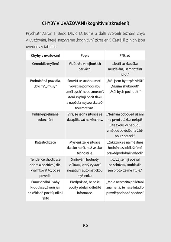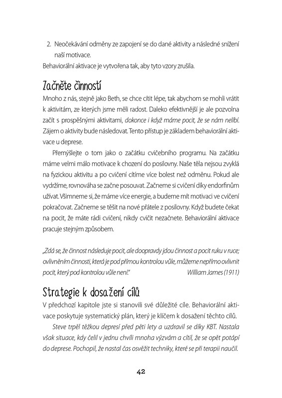 Autor používá srozumitelné návody, ukazuje, jak popisované principy uplatnit v každodenním životě a pro ilustraci účinnosti postupů přidává osobní příběhy svých pacientů.