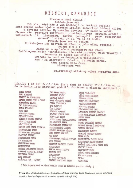 Nežná revolúcia v roku 1989 predstavuje jednu z najvýznamnejších udalostí v našich novodobých dejinách. Hoci bol jej priebeh v porovnaní s ostatnými medzníkmi našej modernej histórie oveľa menej dramatický, vytvára na osi dejín ostrý predel nielen medzi dvomi historickými epochami, ale aj medzi úplne odlišnými spoločnosťami a spôsobmi života.