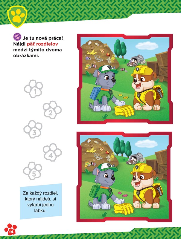 Pripoj sa k Ryderovi, Chaseovi, Marshallovi, Rubbleovi, Skye, Rockymu a Zumovi a bav sa veselými aktivitami v tejto knižke! Môžeš kresliť, vyfarbovať, vystrihovať, hrať sa a veľa ďalšieho! Naučíš sa mnoho užitočných vecí, pretože naše heslo predsa znie: Žiadna práca neodolá našej labke!