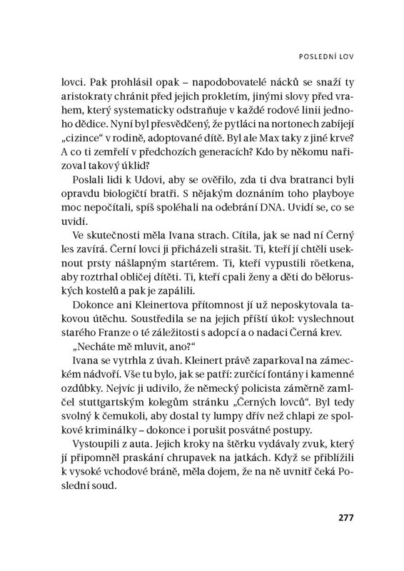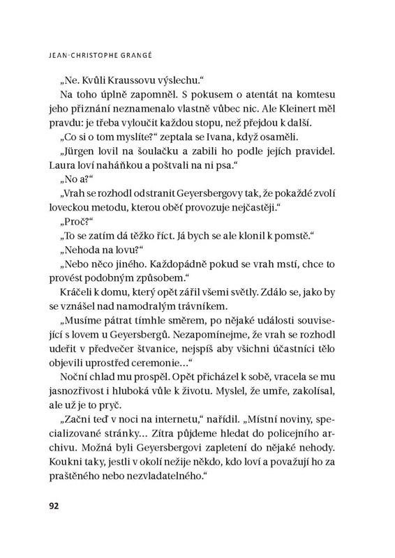 Během honu v lese v Alsasku našli dva francouzští hosté tělo 34letého hraběte Jürgena von Geyersberga, potenciálního dědice z velmi zámožné německé rodiny. Hlavu oddělenou od těla, vykastrovaný, s vyjmutými vnitřnostmi. Čin je velmi krutý a historie rodiny dlouhá a pestrá. Komisař Niémans bude mít co dělat.