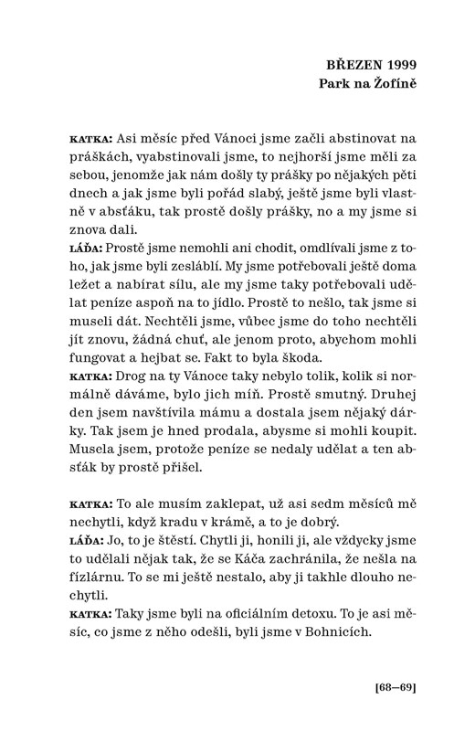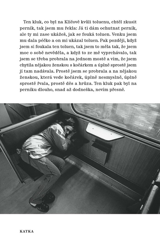 Jaký je vlastně život Kateřiny B., která se v roce 2009 objevila v unikátním časosběrném dokumentu Heleny Třeštíkové? Režisérka Katku sledovala čtrnáct let v sestupné spirále drog, krádeží, prostituce a fyzického i psychického chátrání, kterou jen občas přerušila naděje a odhodlání s drogami skoncovat. Dnes je jí 43 let, o její dcerku se stará babička a Katčin věčný boj závislosti s upřímnou touhou po záchraně stále pokračuje. Sérii unikátních rozhovorů připravil Michael Třeštík a fotkami ji doprovodil jeho syn Tomáš. Katka v biografii, na níž spolupracovala, líčí své dětství, těhotenství, cestu ke drogám i touhu po životě bez nich, která ji stále neopouští.