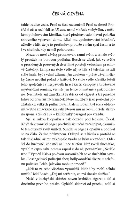 "Dnes už kultovní detektiv Harry Bosch se představil čtenářům v roce 1992 a brzy se přiřadil k řadě nejslavnějších postav americké tvrdé školy, jakými jsou například Phil Marlowe nebo Steve Carella. Černá ozvěna, jejíž reedice ve zcela novém překladu právě vychází, je Boschovým prvním případem.