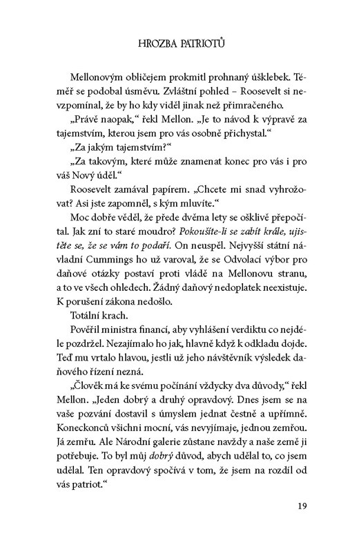 S takovýmto tvrzením přišel ve své knize jistý neplatič daní. Ve Státech má teď zatraceně horkou půdu pod nohama a ve strachu z odsouzení uprchl do Evropy. Teď napjatě čeká na černou brašnu, kterou mu má přivézt bývalý úředník ministerstva financí. Její listinný obsah zajímá spoustu lidí – například Cottona Malonea, jehož do akce povolala zpravodajská služba Magellan Billet.