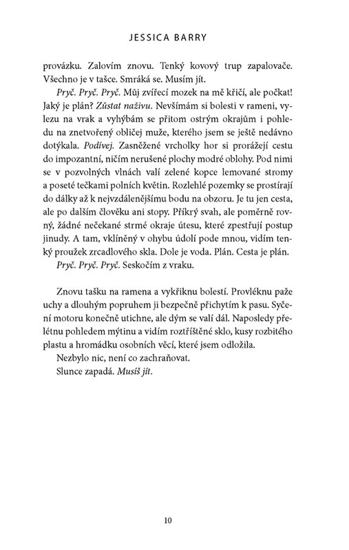 "To, že Allison přežila pád dvoumístného letadla, ještě neznamená, že si zachránila život. Je sama uprostřed coloradských hor, odkázána jen na pár věcí, které sesbírala na místě havárie. Od nejbližší civilizace ji dělí mnoho dní chůze. A navíc v ní stále vzrůstá podezření, že je jí někdo v patách.