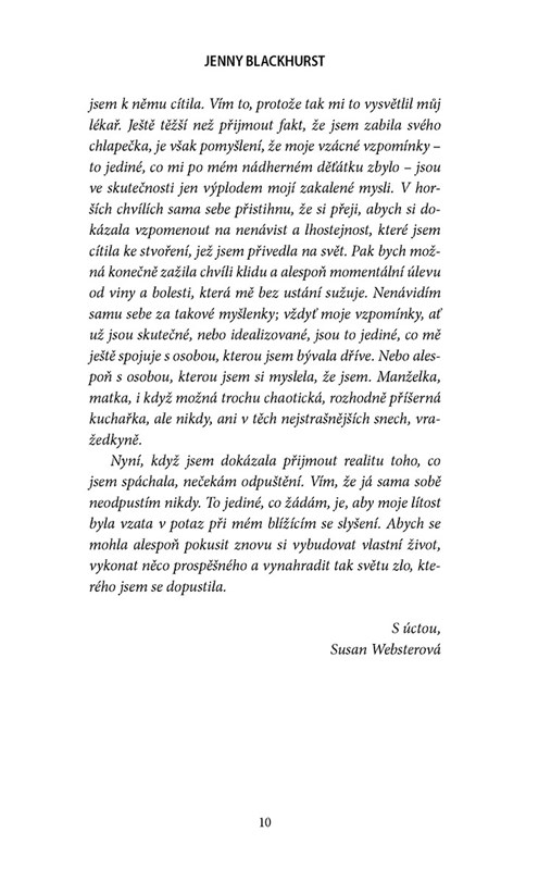 "Jmenuji se Emma Cartwrightová. Ještě před třemi lety jsem byla Susan Websterová a zabila jsem svého dvouměsíčního syna Dylana.