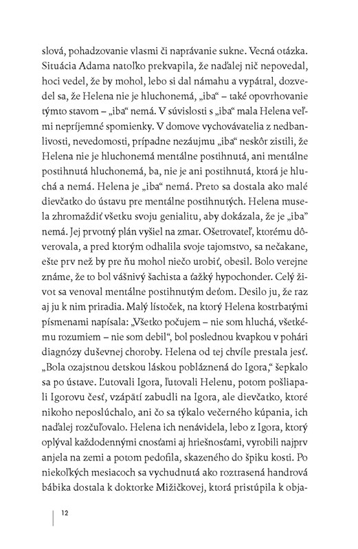 Helena, Adamova veľká láska. Vlastne asi beriem späť to, že som si na ňu nevytvorila žiadny názor. Hnevala som sa na ňu počas čítania celej knihy. Za to, aký vplyv mala na život jedného človeka, ktorý mohol vyzerať úplne inak. Aj keď to neurobila zámerne a tu sa zasa len ukázalo, akí sme my ľudia omylní a veľakrát spôsobíme čosi, čo vedome nechceme (aj tak som na ňu mala dosť ťažké srdce).