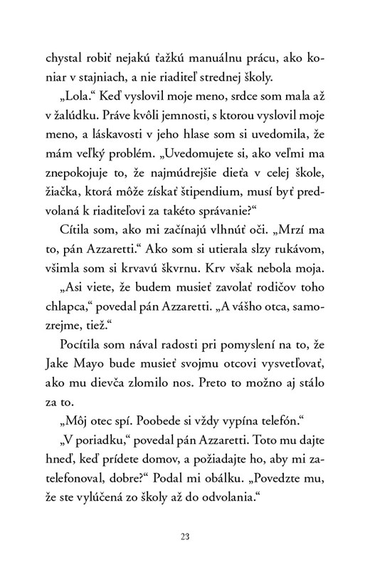 Keď stará mama Loretta vezme Lolu na letné prázdniny do Sieny, svojho rodného mesta v Taliansku, Lola sa dozvie o histórii svojej rodiny, hlbokom žiali a dobrodružstvách, ktoré siahajú až do čias druhej svetovej vojny. V roku 1945 volali Lorettu Odvážna divoška. Prezývku získala za svoju nebojácnosť a výhru v slávnych konských pretekoch Palio, ktoré sa v Siene konali každý rok, až kým nevypukla vojna a nepripravila Lorettu o to najcennejšie. A tým navždy poznačila jej život...